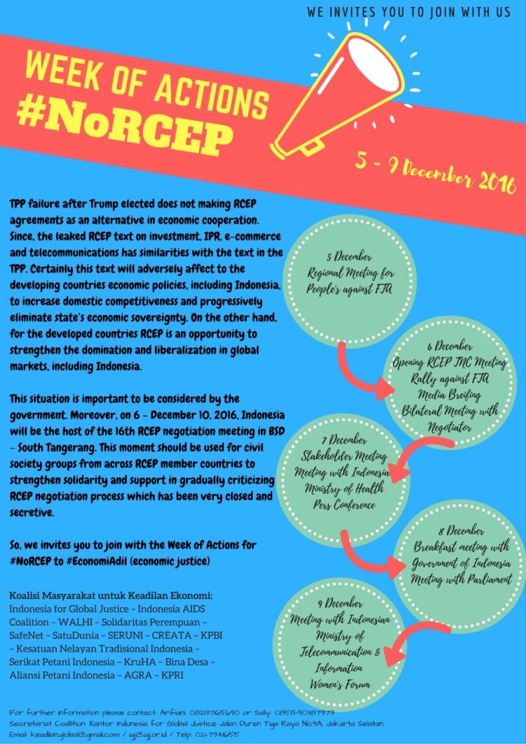 Read moreKoalisi Masyarakat untuk Keadilan Ekonomi gelar aksi tolak RCEP. Dalam aksinya, mereka mendesak pemerintah Indonesia untuk tidak melanjutkan perundingan perjanjian ...